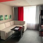 Очень рады, что выбрали этот отель, довольна вся семья. Номер бронировали именно в корпусе 4*, поэтому пишу про него. Кровать 180 см, для ребенка мягкая раскладушка, поставили рядышком с кроватью. Вода на всех каждый день по бутылочке. Великолепные завтраки. Посетили и фитнес-зал, и бассейн, все отлично от раздевалок до качества тренажеров.