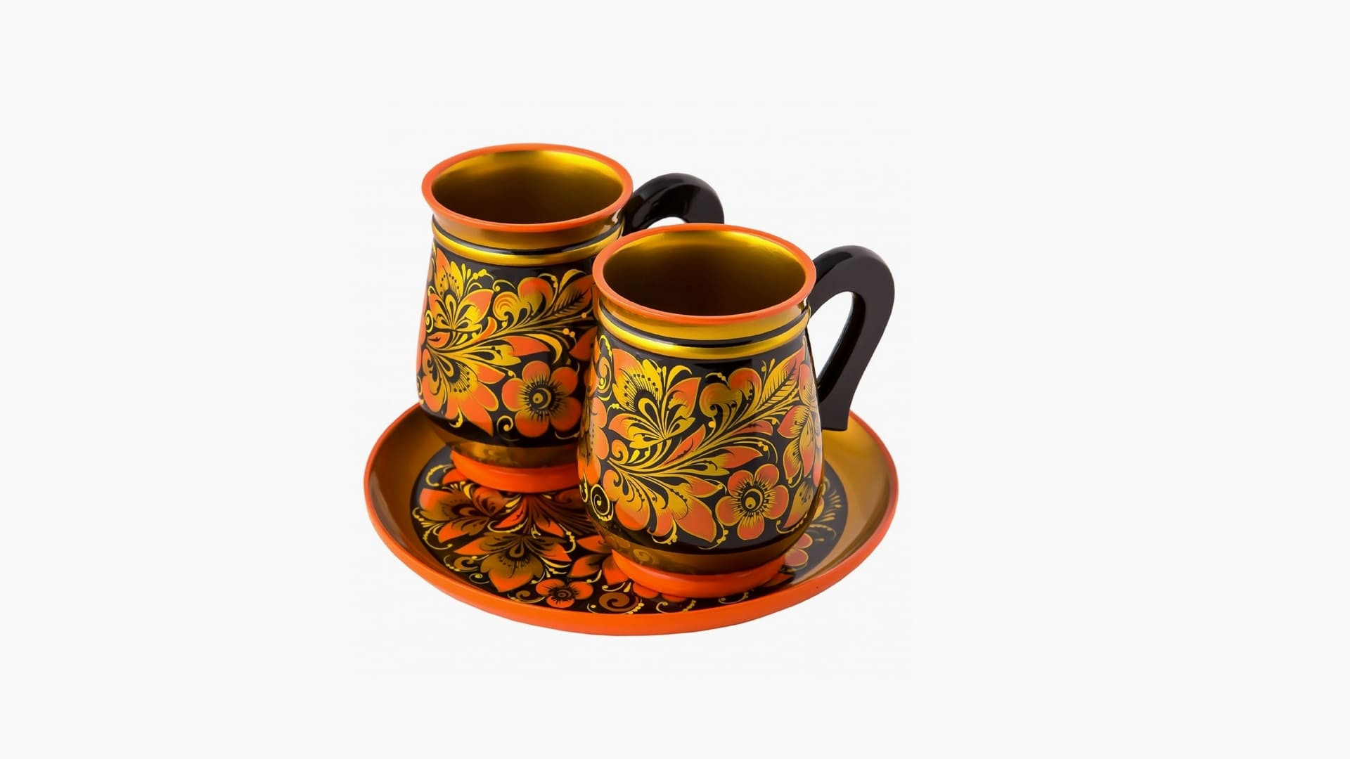 Набор для пива 3-х предметный. Набор включает в себя: кружка 110х85 мм. — 2 шт., тарелка-панно 210х21 мм. — 1 шт. Изготовлен в полном соответствии с традиционной хохломской технологией золочения.